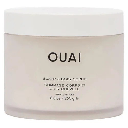 • OUAI SCALP & BODY SCRUB. A rose-scented scrub that gently exfoliates and removes product buildup on the scalp and skin. It then moisturizes and nourishes, leaving you feeling soft and smooth.